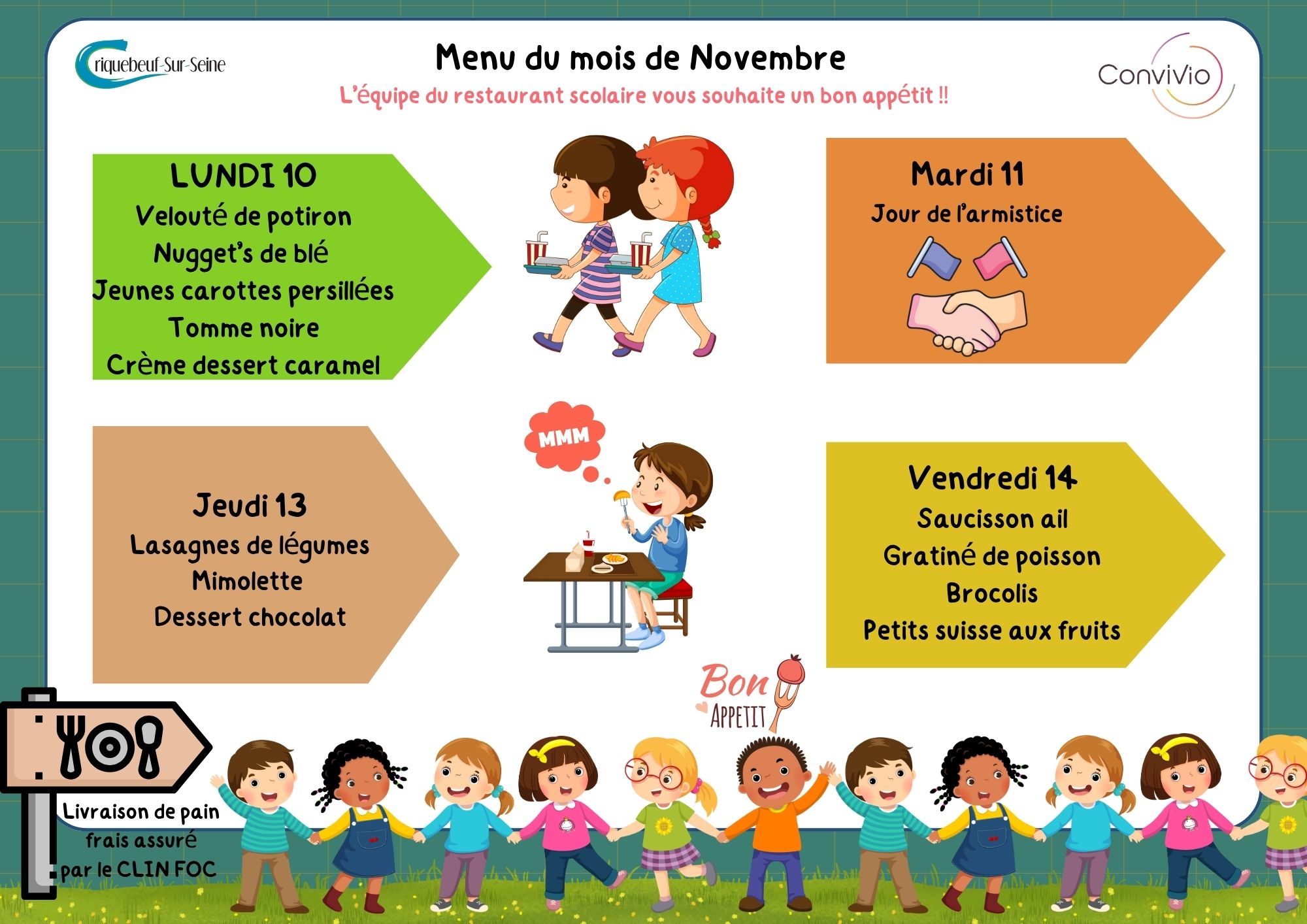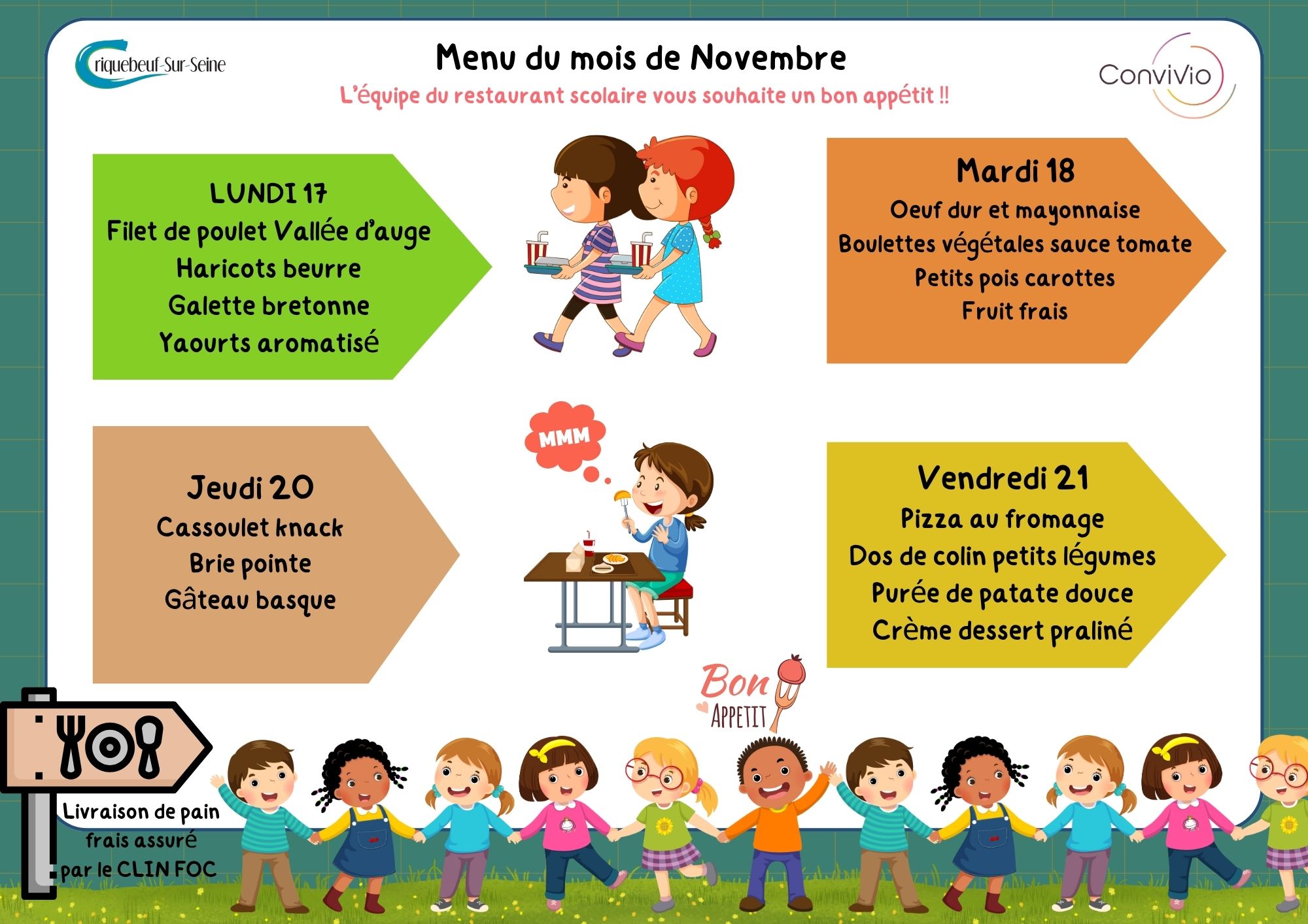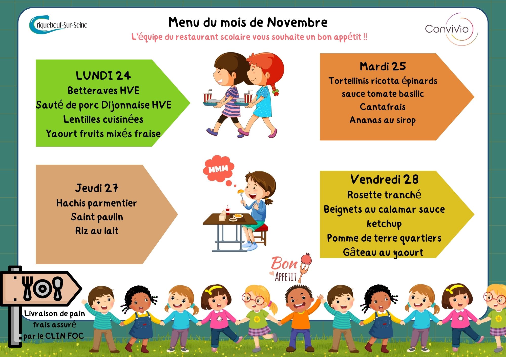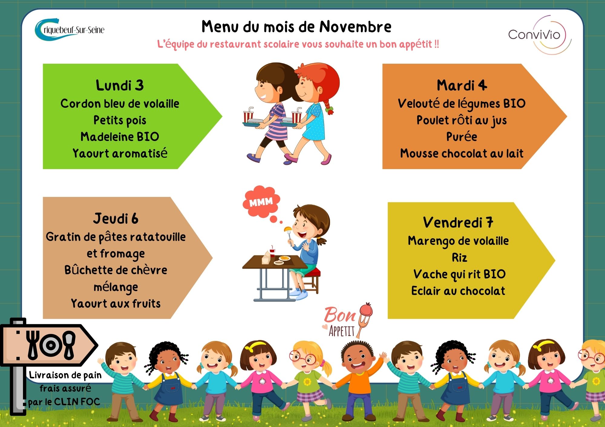 Les repas sont préparés et livrés par la société de restauration CONVIVIO.